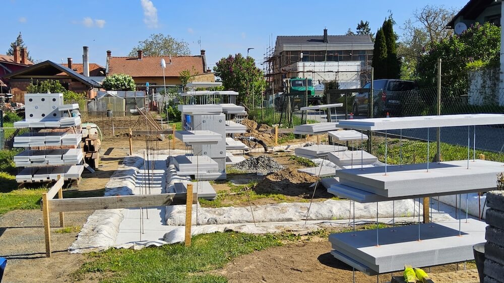 - Tepelné izolace základových krčků (soklu) kvalitním XPS (extrudovaným polystyrenem)