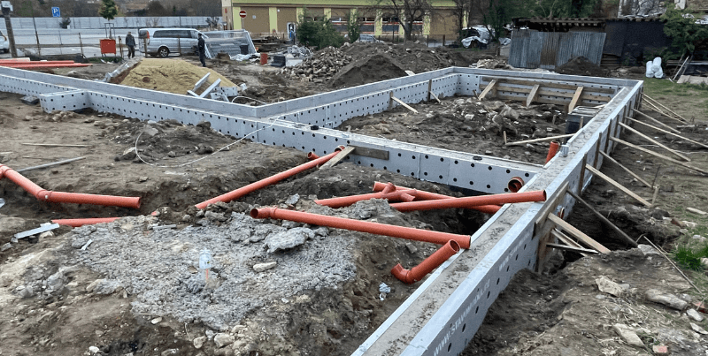 Naše výrobky jsou oblíbené zejména u svépomocných stavebníků a jedním z nich je zákazník z Kutnohorska, který potřeboval postavit základy pro dřevostavbu. Objednal si u nás izolační tvarovky TERMO, přičemž měl požadavek celkové výšky základových tvarovek 1,1 m. Úroveň tak byla řešena dvěma řadami (spodní 0,5 m + horní 0,6 m). Pro obě úrovně jsme zpracovali kladečské plány.